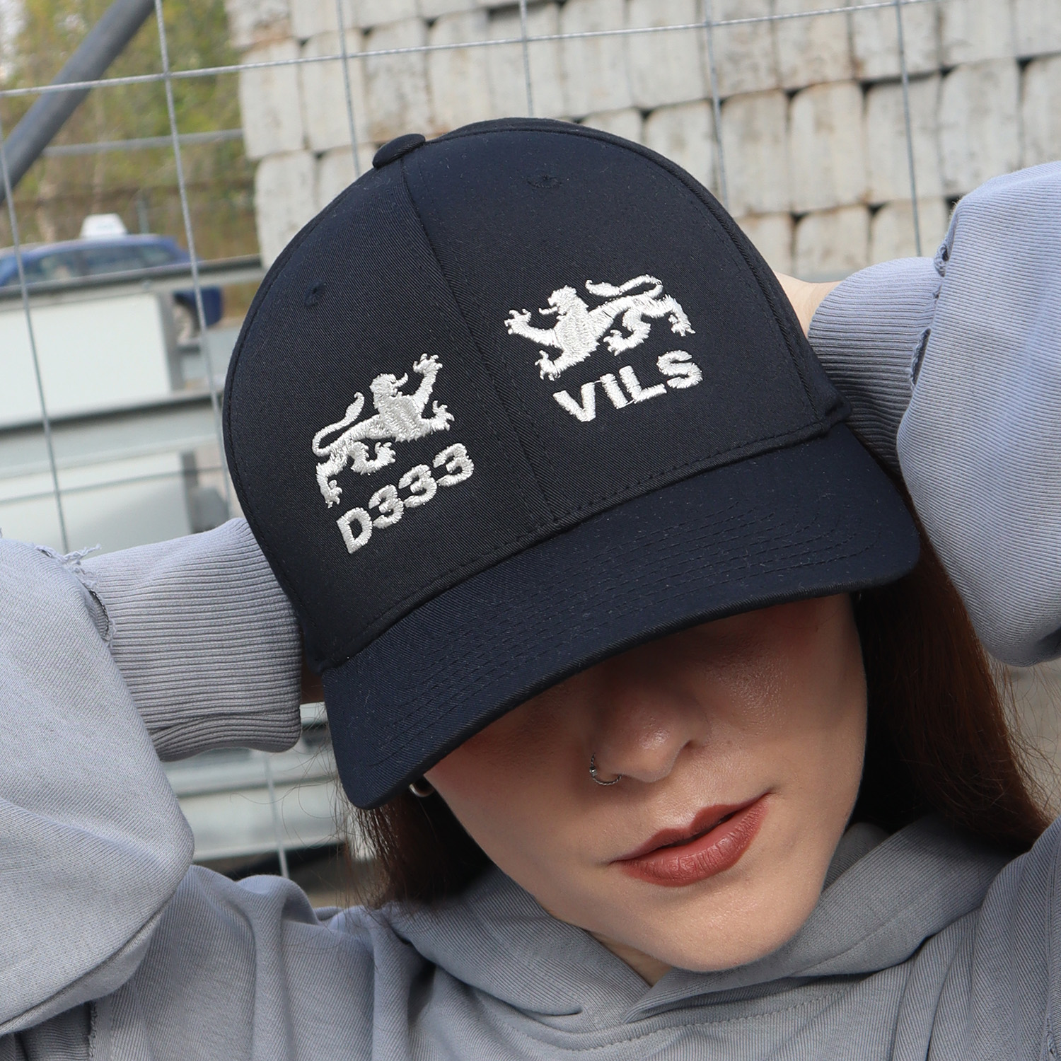 Metalowe nity po obu stronach czapki.